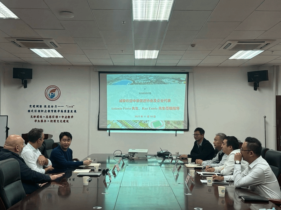 2025年11月10日,意大利中意促进协会和TiA公司代表Antonio Forte、Rao Ennio一行3人莅临克拉玛依职业技术学院石化分院开展专题交流。分院院长田顺、副院长张伟及银龄教师杜国勇等7位教师参加会议,双方围绕石化环保技术创新研发、场景应用等核心议题深入研讨,为校企协同发展按下“加速键”。
