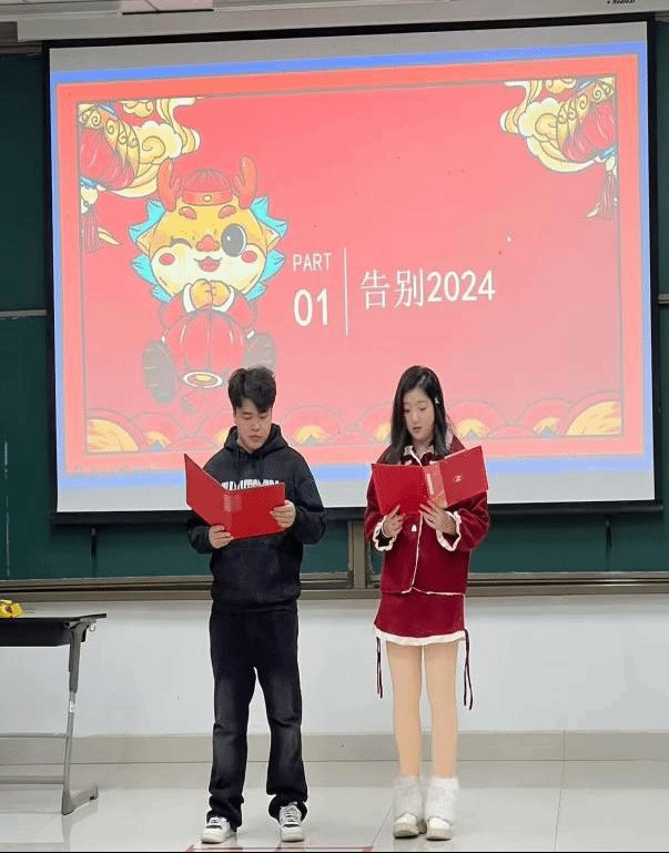 本次元旦晚会以引用习近平总书记的新年贺词作为开场,勉励广大青年成为能够担当民族复兴大任的时代新人。随后播放的工分23312024年回忆视频,带领大家重温了一起走过的点点滴滴,积蓄来年奋斗的磅礴力量。晚会由班长王瀚及文宣委员蒋懿帆主持,热西代·吐地、穆海热姆·奥斯曼江、热奥善·阿斯依汗等同学带来现代舞串烧表演,李浩杰同学演唱歌曲《后来》,先后赢得了全场的热烈掌声,洋溢着青春与活力。