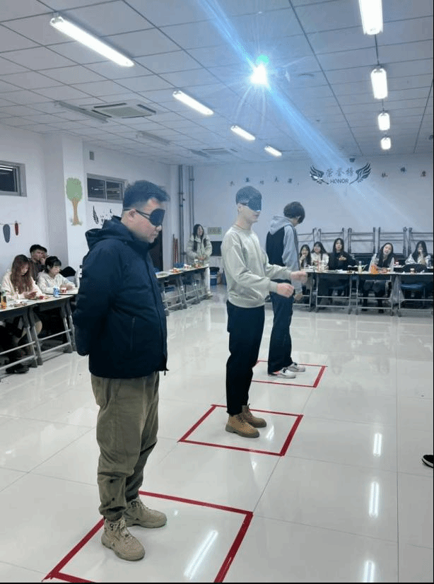 除了精彩的节目表演外,班委们还精心策划了“你画我猜”、“限时套圈”、“蒙眼60秒原地踏步”等趣味游戏,让同学们在轻松愉快的氛围中参与其中。其中,“蒙眼60秒原地踏步”游戏中,班主任杨将老师也与学生一同体验,现场欢呼声、掌声不断,充满了欢乐与温馨,晚会在全班合唱《明天会更好》中落下帷幕,晚会的最后,大家一起合影留念记录下这美好而难忘的时刻!