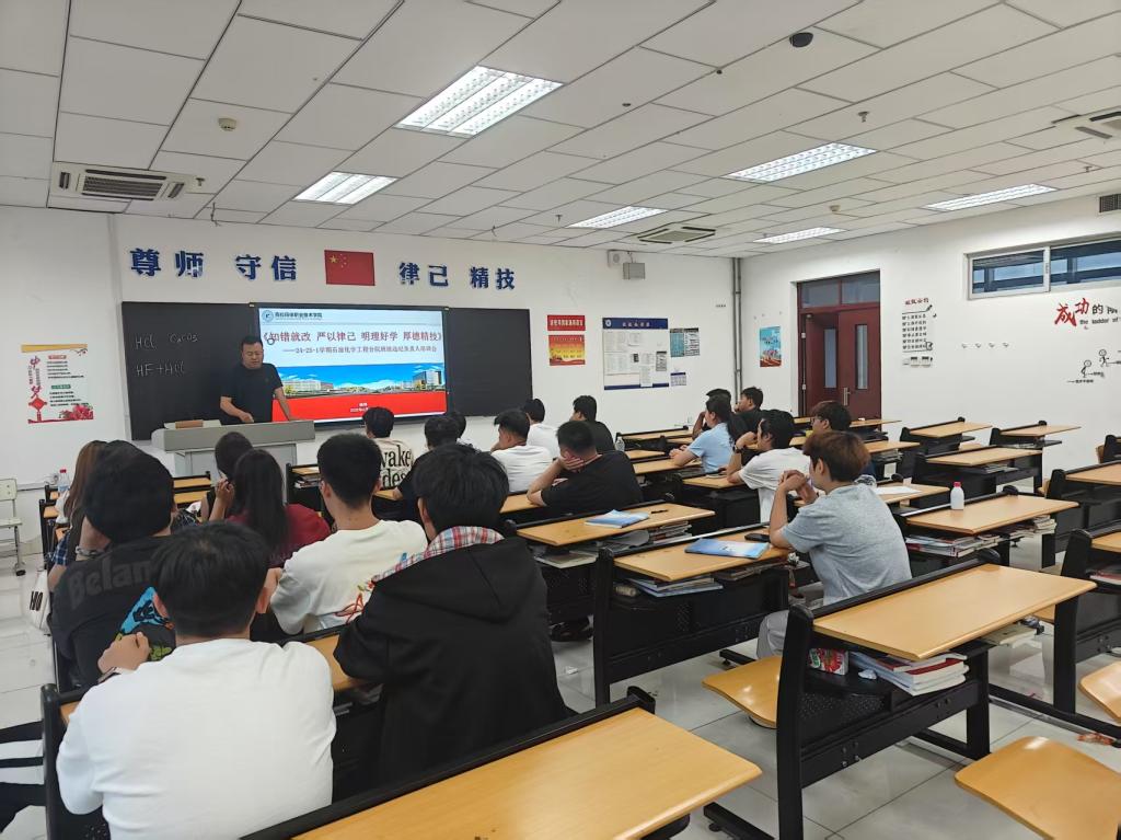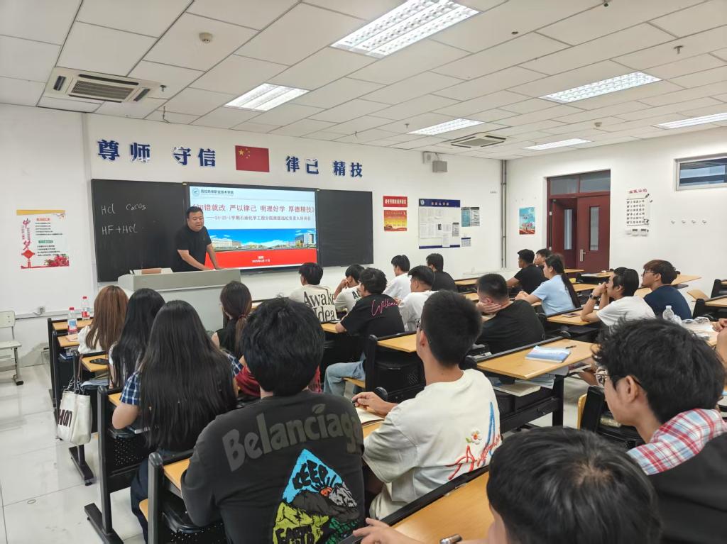 为进一步加强学生纪律管理,强化学生干部责任意识,把守纪律、讲规矩作为行为准则,营造良好的校园秩序,石油化学工程分院于2025年6月19日召开各班违纪负责人开展了专题培训大会,此次大会由杨将老师主持,共有45余名学生干部参加会议。